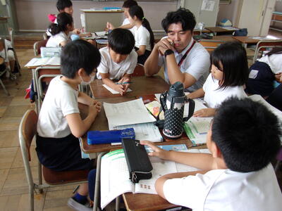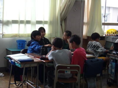 3校時目には3年生のクラスで算数「大きい数のかけ算の仕方を考えよう」という授業を行っていました。20×3の計算を考えていました。計算の仕方や答えはすぐに求められましたが、何故その答えになったのかを考えていました。自分なりの考え方を図や言葉、計算方法、式でノートに書いていました。その後グループで意見交流をしていました。友達の意見が参考になり、自分に取り入れたり、違う導き方があるということが分かったようでした。