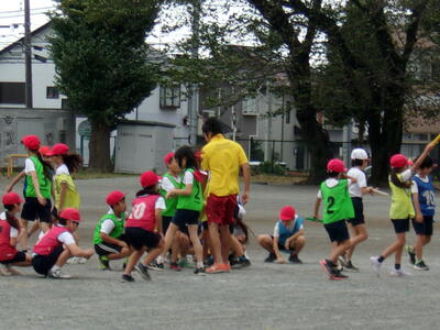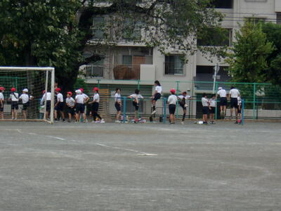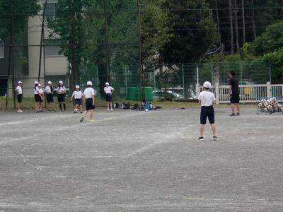 校庭では5年生が鉄棒の練習をしたり、4年生がリレーの練習をしていました。6年生がキックベースボールの学習をしていました。校庭で同時に体育を行うので、お互い邪魔にならないよう配慮をして交替に行っていました。