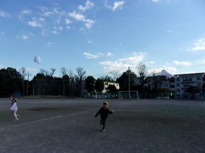 連日良いお天気が続いていますね。14日(水)に特別支援学級の児童が凧あげを行っていました。自作の凧を「絵を描いたんだよ。」と誇らしげに見せてくれました。風に向かって勢いよく走り、凧は青空に高くあがりました。友達と一緒に走りながら、楽しそうな様子でした。何度も走って、凧をあげていて、頑張っていました。