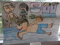 今日は水泳教室が行われました。午前中は4年生と支援級、午後は3年生がルネッサンス座間にバスで行きました。涼しかったので、少し冷んやりしたようですが屋内なので気持ちが良かったという子が多かったです。楽しく水慣れ、水遊び、泳ぐ練習ができました。見学の子ども達の見守りをしてくださったボランティアの保護者の方々ありがとうございました。