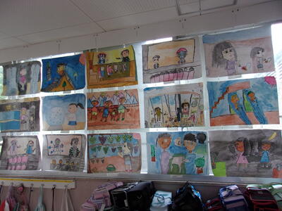 特別支援学級の廊下の作品