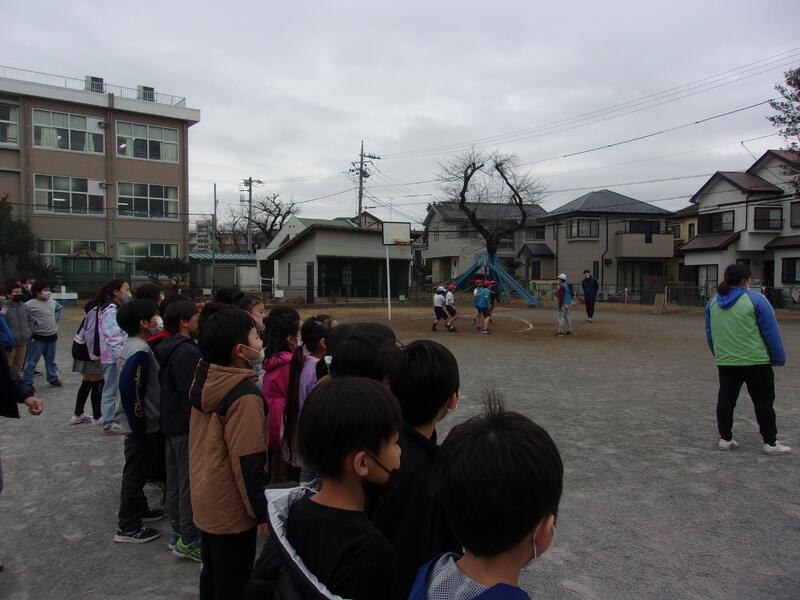 4面ドッジということで、途中から他のクラスと同盟を組んだり攻めるクラスを相談したりして楽しそうに取り組んでいましたよ。