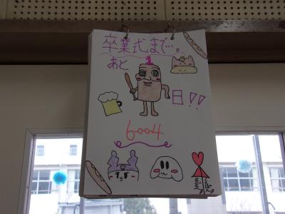 いよいよ来週が卒業式です。後もう少しですね。体調を万全に整えて、当日を迎えて欲しいと思います。