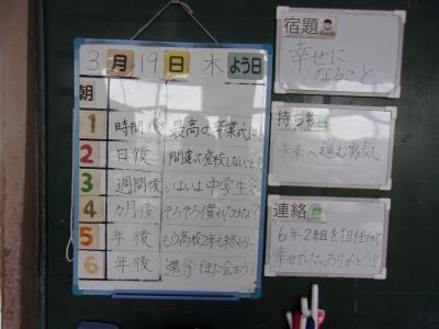 3月も2週目に入りました。卒業式に向け、連日、練習や準備が行われています。先週、体育館のイスが並べられ、準備が着々と進められています。子ども達も緊張感を持って練習に励んでいます。今週は予行練習も行われます。思い出に残る素晴らしい式になるようみんなで力を合わせて、頑張りましょう。