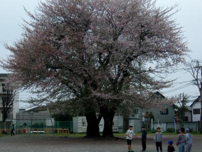 栗小自慢の桜の木です。桜の木の下で、遊んだり、のんびりできる素敵な場所です。今朝も早速在校生がボール遊びを始めていました。
