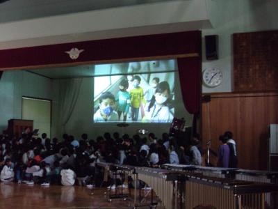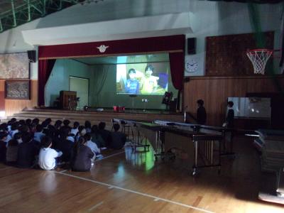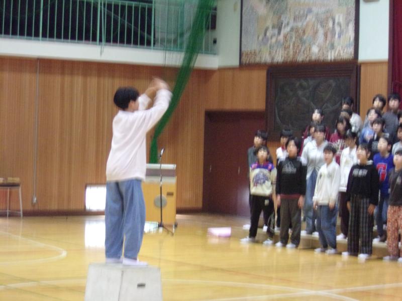中休みのなわとび集会の様子。1,2年生の子がなわとびに挑戦しました。集会委員会のみなさん、ありがとう。