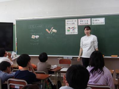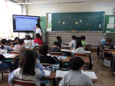 □×a=bの式に当てはまる数を求める学習でした。既習事項を振り返りながら何故そうなるのかを考えました。自分の考えや友達の考えを聞きながら学習を進めていました。「次の問題も早く解きたいな」「分かった!簡単だよ!」などと言いながら答えを導き出していました。