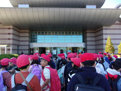 本日、4年生が生命の星地球博物館と本間寄木美術館に遠足に行きました。秋晴れの下、バスで元気に出発しました。バスの中では「楽しみで早く目が覚めた。」などと話したり、歌を歌ったり、クイズをしたりしながら楽しく過ごしました。