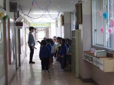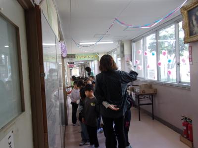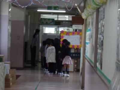 一年生が校舎の中を見学していました。校長室にも来てくれました。挨拶がとても上手で驚きました。学校は広いので、少しずつ教室を覚えていって下さいね。