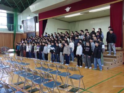 3月12日に卒業式の予行練習がありました。本番前の練習で体育館は緊張で張り詰めていました。