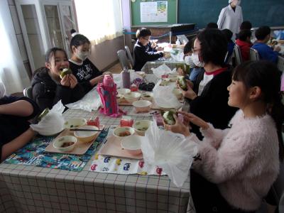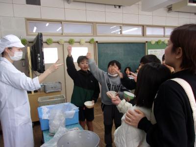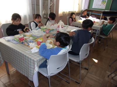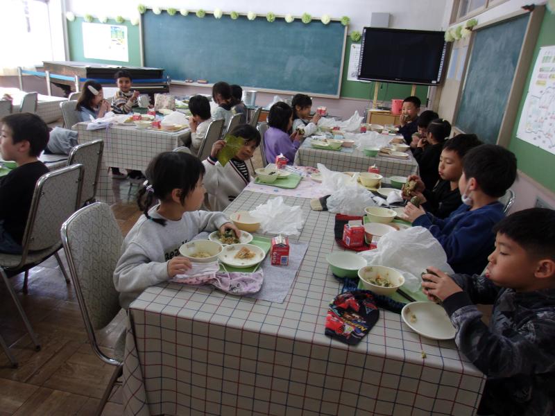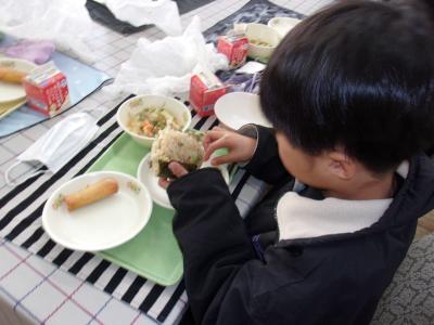 3学期最初のランチルーム給食が行われました。4年1組でした。おにぎりを自分で握って食べました。「このそぼろふりかけ、おいしい。」「おにぎり、すごくおいしい。」とみんなにこにこ笑顔でおにぎりを頬張っていました。おにぎりを握るのは初めてだというお子さんもいました。自分で作るおにぎりは格別ですね。