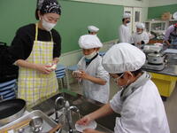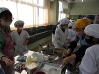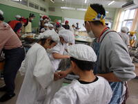 今日の2・3・4校時に特別支援学級の子ども達がだいこんパーティーを行いました。自分たちが育てた収穫したての大根を使って、大根ステーキ、大根の葉のごはん、さつまじるの3種類のメニューを作りました。子どもたちは協力しながらそれぞれの役割をしっかりとやり遂げていました。とっても美味しいだいこん料理が出来上がりました。保護者の方5人もお手伝いをしてくださり、助かりました。ありがとうございました。