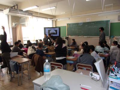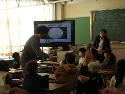 3年生が外国語の授業を行っていました。「これは何でしょう?」という問いに英語で答える子ども達。「はい!」と元気いっぱいに楽しみながら答えていました。