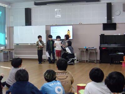 今日は全校で学年ごとに体育館でイングリッシュデーが行われました。ALTの先生方がたくさんお見えになり、教えて下さいました。低学年は体全体で表現していてパワー全開でした。高学年はしっかりと考えながらコミュニケーションを取っていました。どの学年の子もALTの先生とすぐに打ち解け、楽しく活動できました。笑顔溢れる楽しい時間が過ごせました。ALTの先生方ありがうございました。