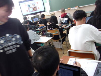 今日の5校時目に3年生が芹沢公園にある「高座海軍工廠」の一部である地下工場の跡地について、研究所の先生にお話しをして頂きました。雷電という飛行機の部品を作っていたそうです。詳しい話を聞くことができました。身近な所に実際に戦争関連の跡地があったり、歴史的な話を聞いて、改めて戦争や平和について考えるきっかけになりました。ありがとうございました。