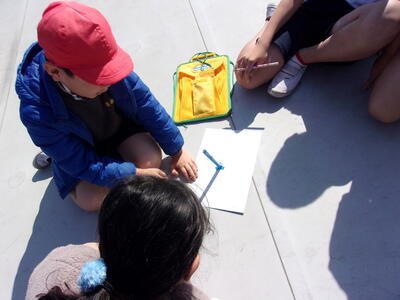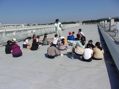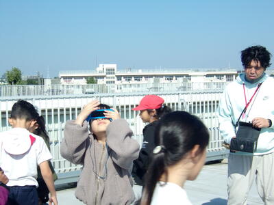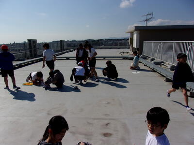 今日の4校時に3年生が理科の学習を屋上で行っていました。日光とかげの関係を調べて、太陽の動きを考える学習です。今日は久し振りにお天気が良かったのでしっかりかげが見えていましたね。遮光板を使って太陽の位置も確認できましたね。