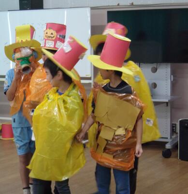 今日は特別支援学級の児童がハロウィンパーテイーを行いました。はじめの言葉の中にも「今日はまちにまったハロウィンパーテイーの日です。」と言っていたように楽しみにしていたことが伝わってきました。約束を言ってくれた6年生の児童は自分でやると立候補をして、自分の名前の頭文字を使って約束を考えて、みんなに向けて発表していました。素晴らしいですね。内容は、仮装のファッションショーやダンス、ウォークラリーでした。とても楽しそうで盛り上がりました。衣装も上手に作っていましたね。頑張りましたね。