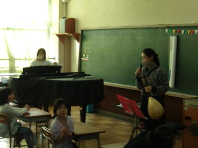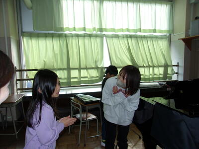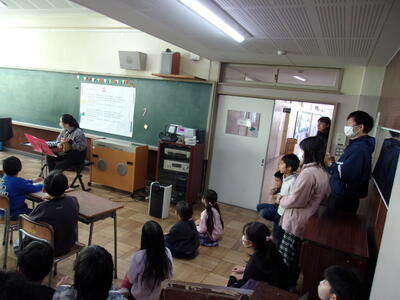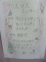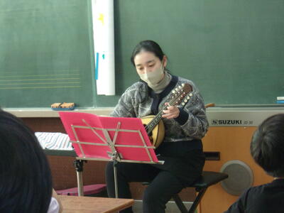 今日の中休みに、音楽室で有志の教職員によるクリスマスコンサートが行われました。マンドリンとピアノの素敵な音色が奏でられ、クリスマスにぴったりなコンサートになりました。今日の参加者は1・3・5年生でした。会場は満員で席が埋め尽くされ、立ち見の子も出るほどの大盛況でした。あっという間の10分間でした。子どもたちに喜んでもらえたらという思いで開催されました。素敵なひとときをありがとうございました。