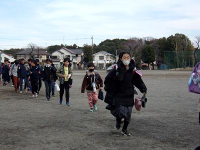 今日は避難訓練がありました。無告知の訓練で中休みに行われました。放送を聞いて、先生がいなくても自分たちで行動できるかという訓練でした。教室にいる子は机の下にもぐり、校庭にいる子は真ん中に集まり、低くダンゴムシのポーズで揺れが収まるのを待ちました。