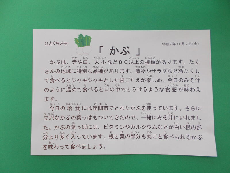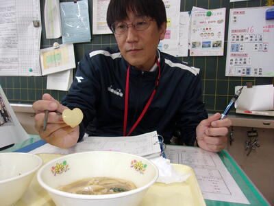 大根がハート型になっていました。子どもたちがおいしく食べられるように給食室で工夫をしてくれています。