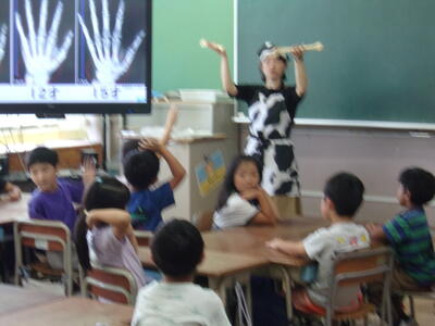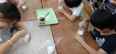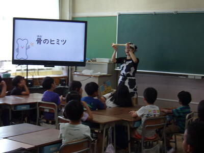昨日の4,5校時と今日の4校時に1年生がクラス毎にミルク教室を行いました。牛乳にたくさん含まれているカルシウムが特に成長期の子どもたちに必要だということを分かりやすく話してくれました。骨の成長には欠かせない栄養ですね。特に牛乳で摂取すると1度にたくさんのカルシウムが効率よく取れるので、育ち盛りの子どもには必要だということがよく分かりました。最後に牛乳にジャムを混ぜて作る「いちごラテ」をみんなで作り、おいしくいただきました。牛乳にジャムを混ぜるだけで手軽に作れるのでお家でも作ってみて下さい。その他に牛乳が苦手な子でもシチューや味噌汁に隠し味で入れるだけでもよいことなど様々な工夫ができることを教えていただきました。ミルク教室の先生方、ありがとうございました。