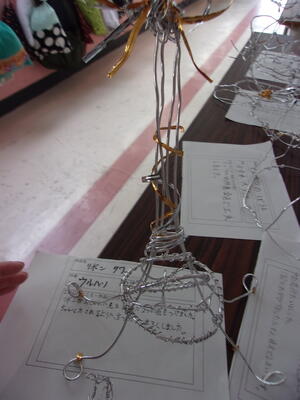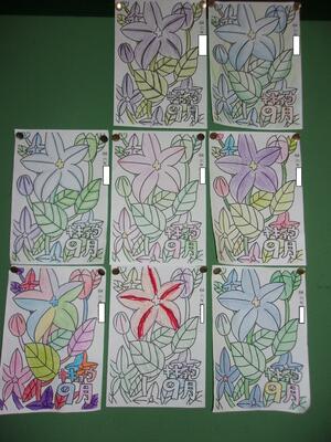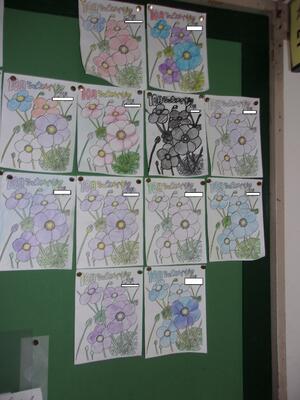 4年生の廊下の作品です。不思議なタネからきれいな花が咲いていました。