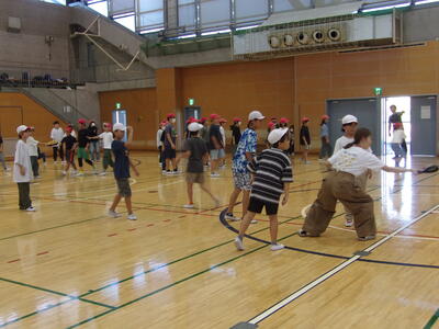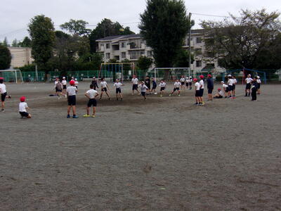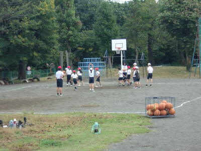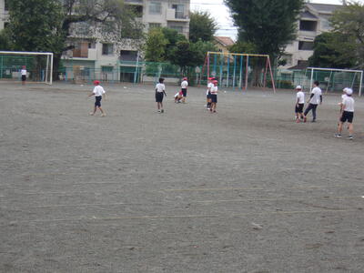 校庭では5年生が鉄棒の練習をしたり、4年生がリレーの練習をしていました。6年生がキックベースボールの学習をしていました。校庭で同時に体育を行うので、お互い邪魔にならないよう配慮をして交替に行っていました。