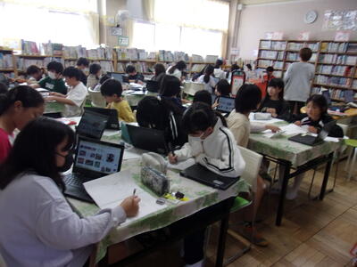 今日の2校時は6年生のクラスで外国語の授業を行っていました。日本の有名な観光地など行きたいところを尋ねて紹介し合う活動をしていました。英語で文章を書いたり、会話をしたりとても意欲的に取り組んでいました。中学校の英語の先生も授業の様子を見に来て下さいました。