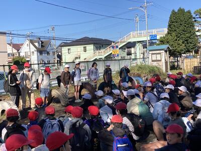 4年生が理科の学習で「秋の虫」探しを校庭で行っていました。