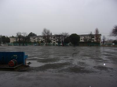 昨日降った雪で校庭にもたくさん雪が残っていました。朝は道路の隅や歩道橋が凍結していて、歩くと滑るので職員が出て注意を呼びかけました。