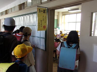 地区別安全指導が5校時に行われました。1年生の子ども達を班長が迎えに来てくれました。その後2年生以上は自分の地区の教室に移動しました。スムーズに移動できていました。帰りは遠い地区から校庭に出て、担当教員と一緒に地区ごとに下校しました。