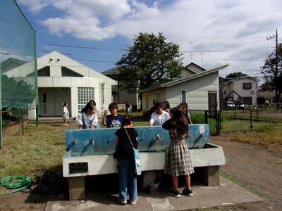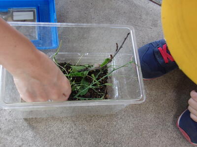 4年生が理科の学習で「秋の虫」探しを校庭で行っていました。