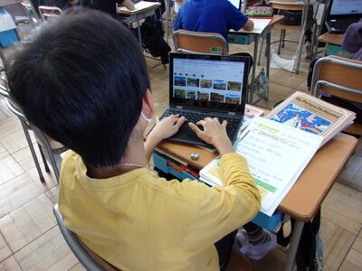 今日の2校時目に4年生のクラスで社会科「わたしたちの県のまちづくり」を学習していました。全国の都道府県ランキングで神奈川県が上位になっていることからどうしてだろう?と子ども達が疑問を持ち、神奈川県の有名な場所、観光地、お土産等を調べてその理由を探ろうという授業でした。