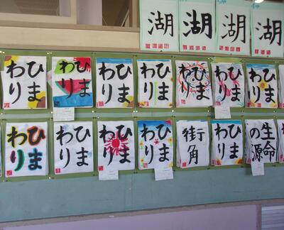 6年生の廊下の作品です。どの子の作品も素敵で力作ぞろいです。