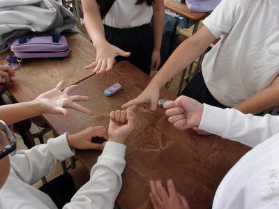 休み時間に3年生の子どもたちが消しゴムを使った遊びを楽しんでいました。身近なもので仲良く遊べることは素敵ですね。