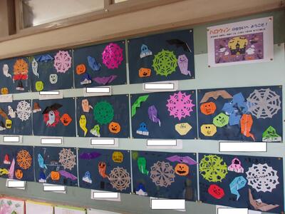 今日は特別支援学級の児童がハロウィンパーテイーを行いました。はじめの言葉の中にも「今日はまちにまったハロウィンパーテイーの日です。」と言っていたように楽しみにしていたことが伝わってきました。約束を言ってくれた6年生の児童は自分でやると立候補をして、自分の名前の頭文字を使って約束を考えて、みんなに向けて発表していました。素晴らしいですね。内容は、仮装のファッションショーやダンス、ウォークラリーでした。とても楽しそうで盛り上がりました。衣装も上手に作っていましたね。頑張りましたね。
