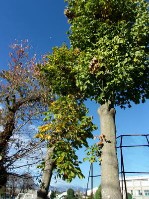 今朝の栗原小学校の景色と空です。紅葉と雲が素敵でした。